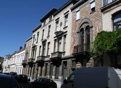 De afbeelding 'Ensemble van zes woningen' gemaakt door Hooft, Elise wordt ter beschikking gesteld door Agentschap Onroerend Erfgoed (AOE) onder de volgende voorwaarden: Modellicentie voor gratis hergebruik, Naamsvermelding-GelijkDelen 4.0 Internationaal.