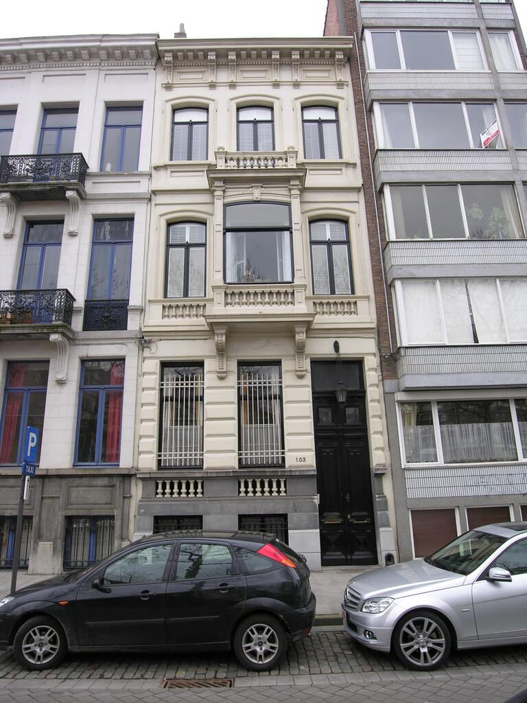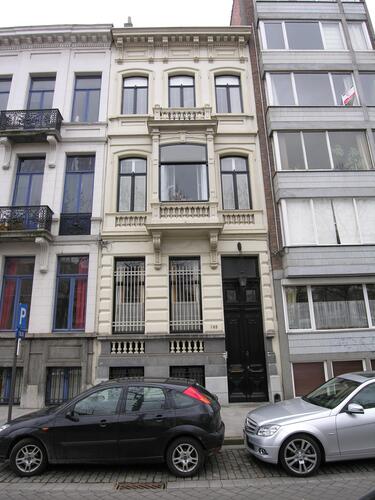 De afbeelding 'Rij neoclassicistische burgerhuizen' gemaakt door Hooft, Elise wordt ter beschikking gesteld door Agentschap Onroerend Erfgoed (AOE) onder de volgende voorwaarden: Modellicentie voor gratis hergebruik, Naamsvermelding-GelijkDelen 4.0 Internationaal.