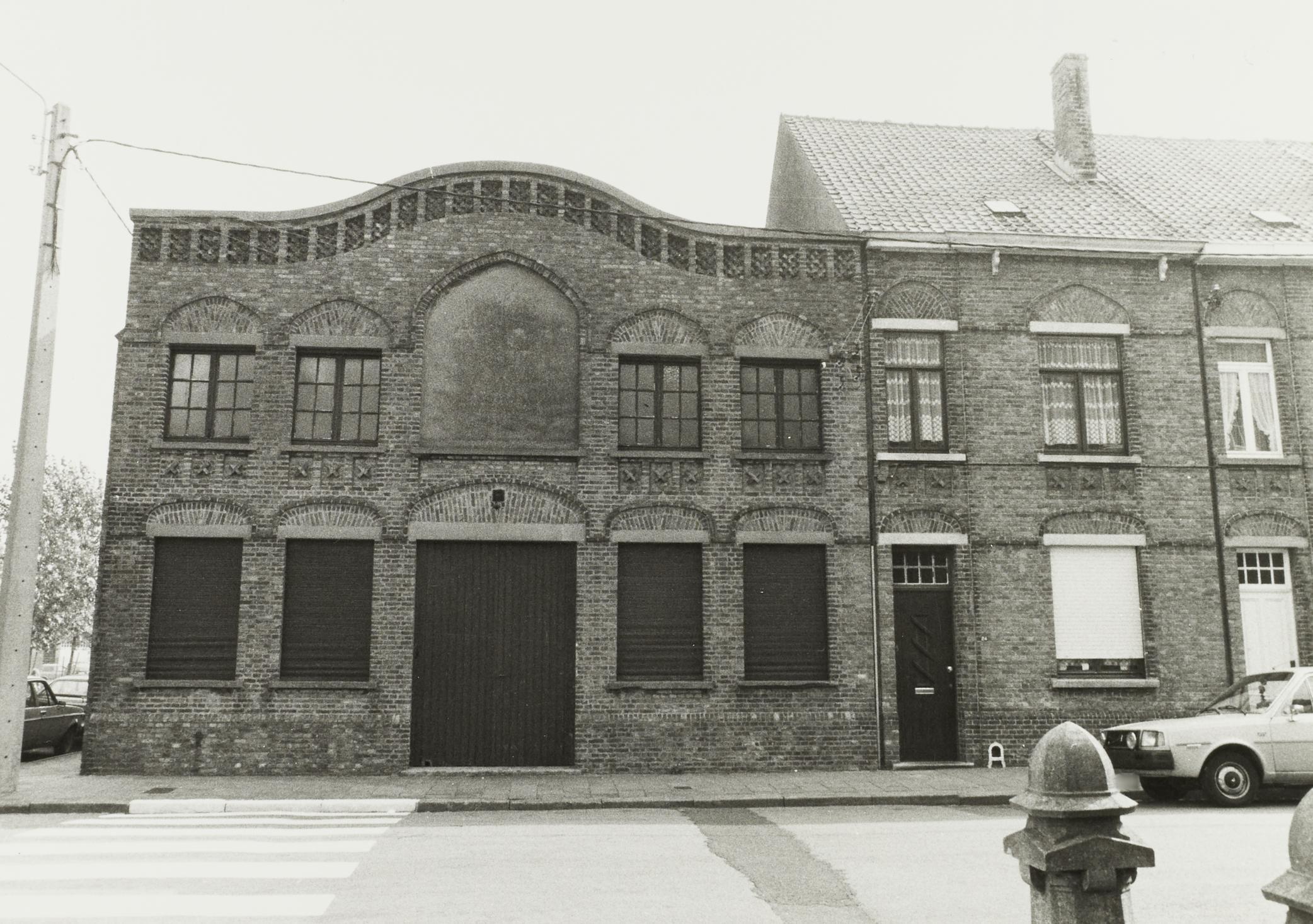 De afbeelding 'Eenheidsbebouwing met werkplaats en arbeiderswoningen' wordt ter beschikking gesteld door Agentschap Onroerend Erfgoed (AOE) onder de volgende voorwaarden: Modellicentie voor gratis hergebruik, Naamsvermelding-GelijkDelen 4.0 Internationaal.