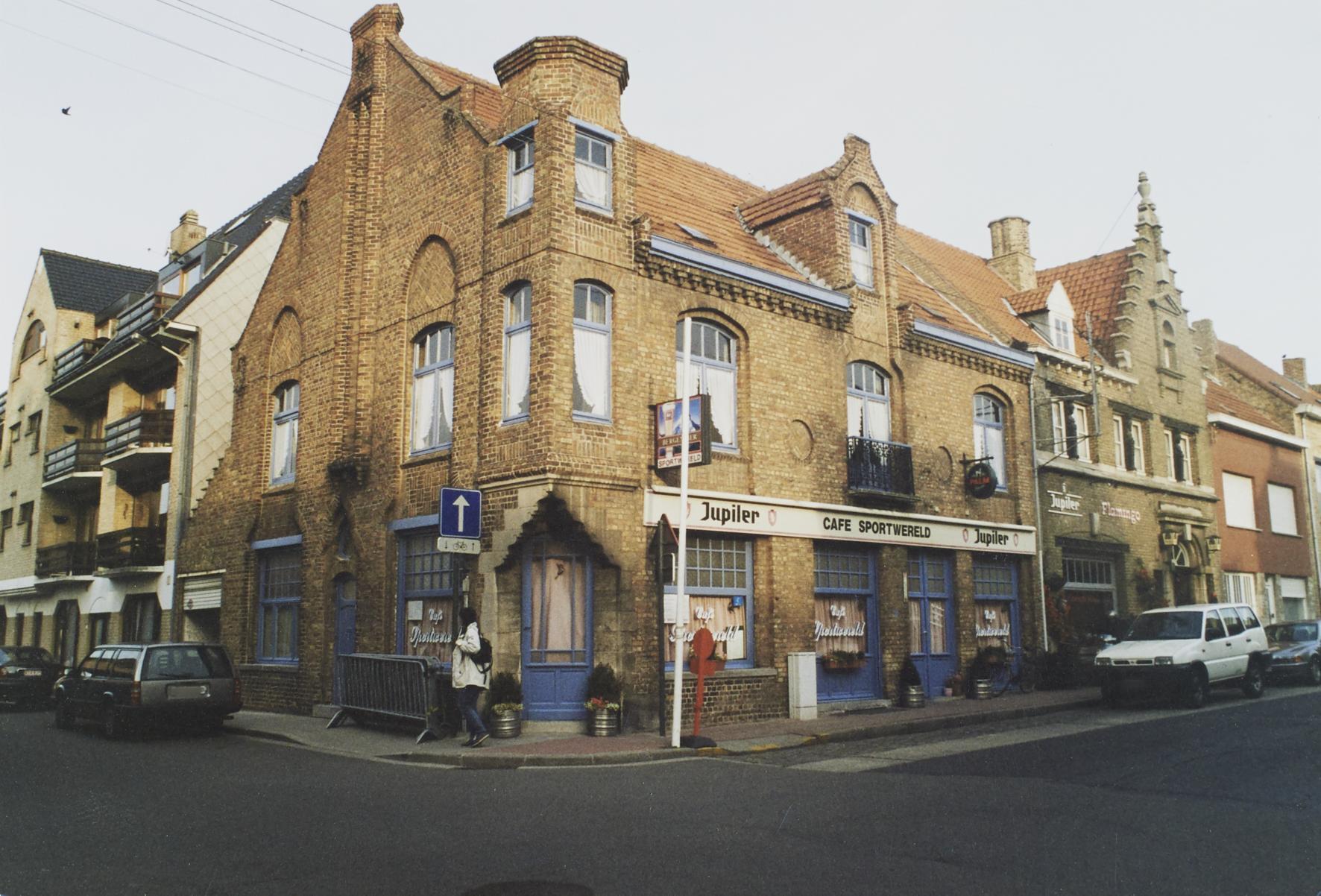 Omschrijving: ROHM West-Vlaanderen Cel Monumenten en Landschappen hoek bij Kerkstraat ca. 1920 ( sportwereld)- 89 (flami