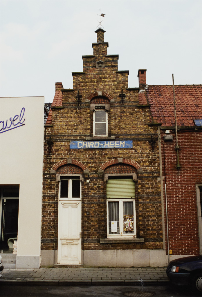 Omschrijving: ROHM - WEST-VLAANDEREN CEL M & L rijhuis-"Chiro-heem" XIX-XX a E-gevel