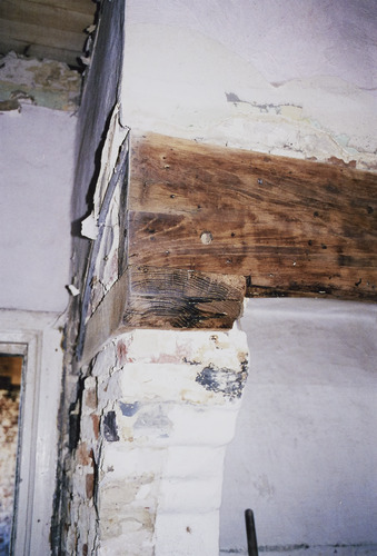 Omschrijving: R-O Vlaanderen onroerend erfgoed hoeve interieur: profilering haardwang