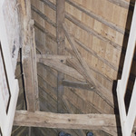 Omschrijving: R-O Vlaanderen onroerend erfgoed hoeve interieur: dakgebinte
