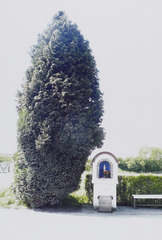 De afbeelding 'Kapel ter ere van Onze-Lieve-Vrouw' wordt ter beschikking gesteld door Agentschap Onroerend Erfgoed (AOE) onder de volgende voorwaarden: Modellicentie voor gratis hergebruik, Naamsvermelding-GelijkDelen 4.0 Internationaal.