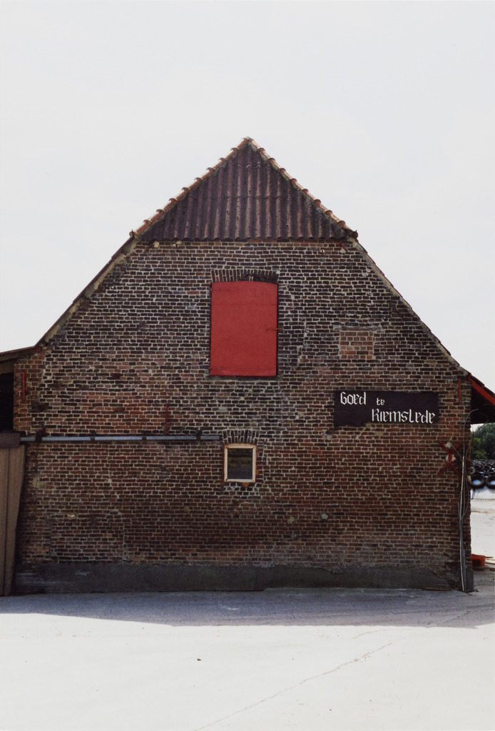 Omschrijving: R-O Vlaanderen onroerend erfgoed hoeve "Goed te Riemslede" ziigevel schuur