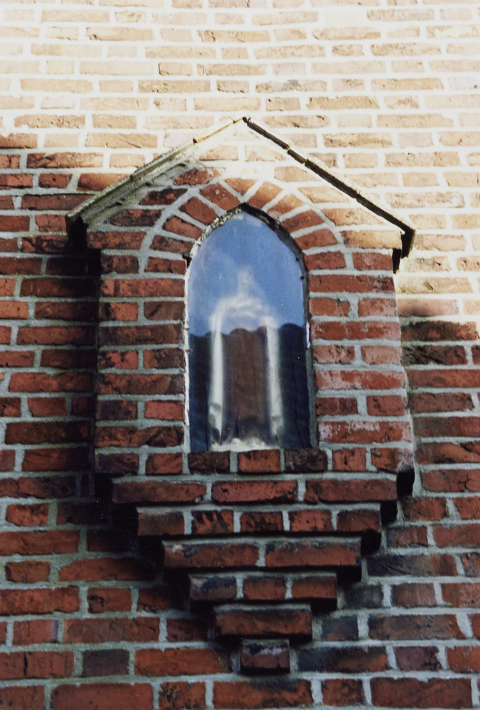 Omschrijving: R-O Vlaanderen onroerend erfgoed eenlaagswoning kapel zijgevel