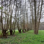 Dubbele rij elzenhakhout op de perceelsrand van een grasland in de Broekbeemden (Mol)