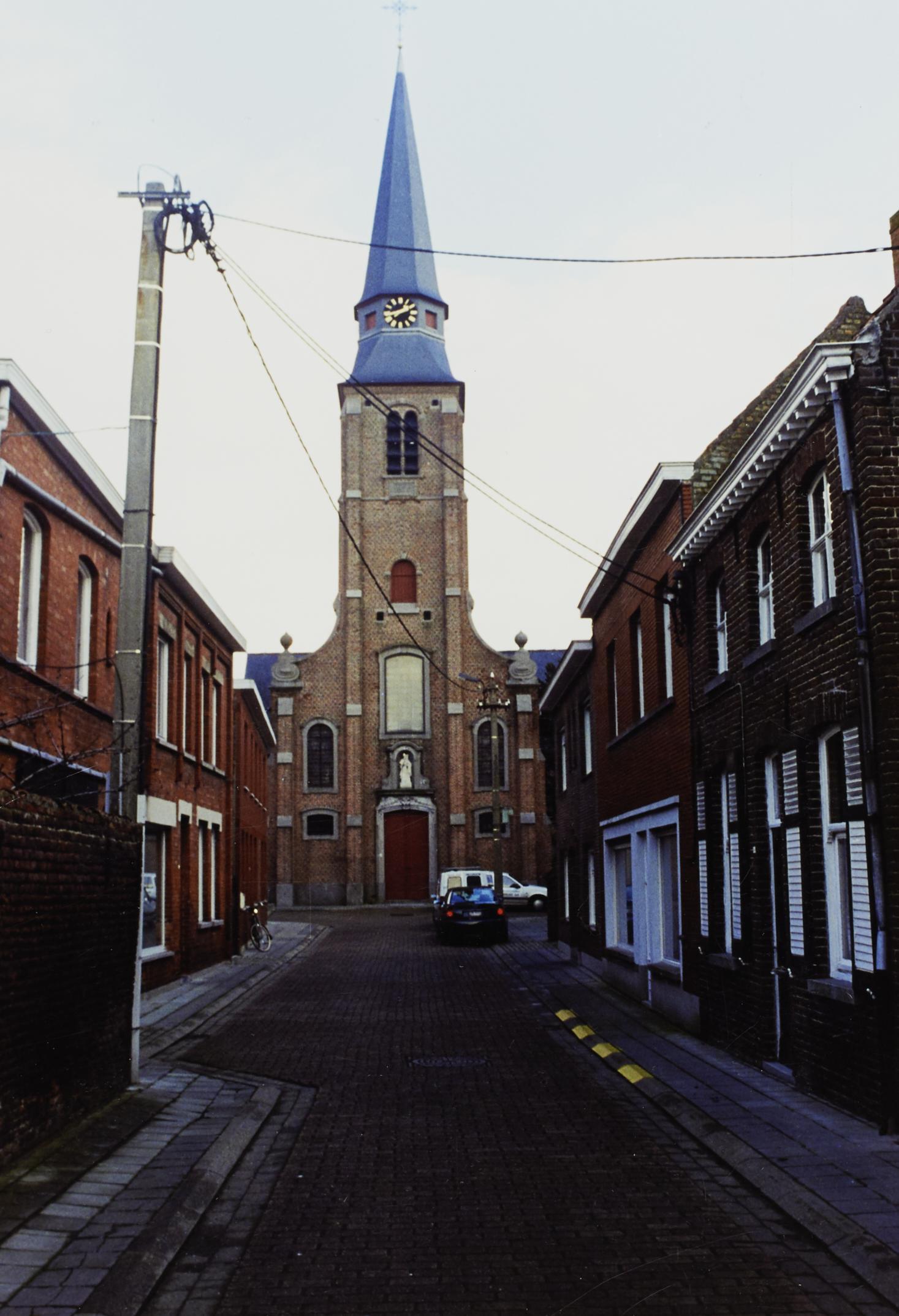 Omschrijving: H.Blasius. Parochiekerk vanuit Kerkstraat. W.toren.