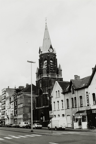 Omschrijving: BESTUUR MONUMENTEN EN LANDSCHAPPEN PROVINCIALE DIRECTIE WEST-VLAANDEREN zicht op kerk