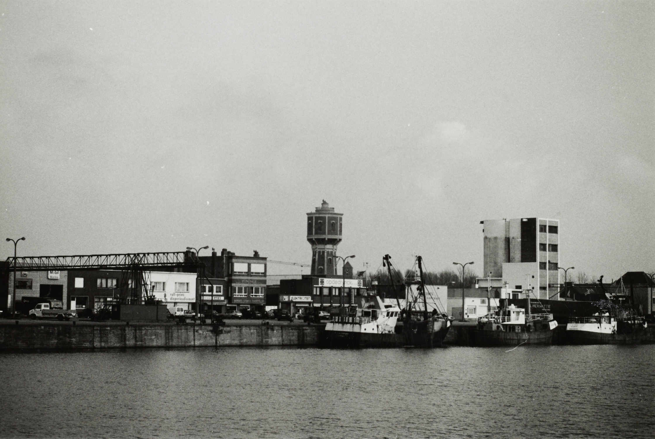 Omschrijving: BESTUUR MONUMENTEN EN LANDSCHAPPEN PROVINCIALE DIRECTIE WEST-VLAANDEREN Vuurtorenwijk vanaf E. Anseelekaai, erts Visserijklok