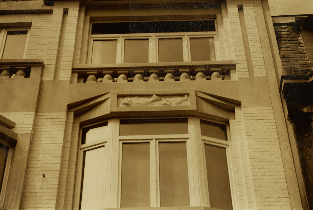 Omschrijving: BESTUUR MONUMENTEN EN LANDSCHAPPEN PROVINCIALE DIRECTIE WEST-VLAANDEREN detail : "vissen" in sluiting erker