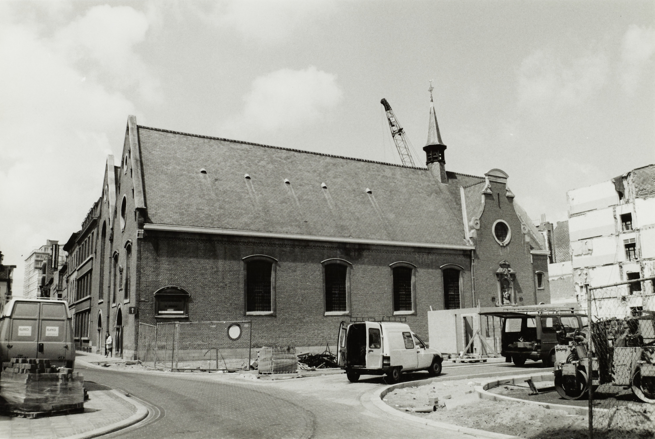Omschrijving: BESTUUR MONUMENTEN EN LANDSCHAPPEN PROVINCIALE DIRECTIE WEST-VLAANDEREN Kapucijnenkerk, zicht. van op Mijnplein