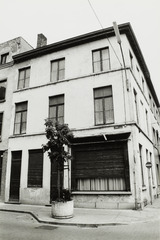 Omschrijving: BESTUUR MONUMENTEN EN LANDSCHAPPEN PROVINCIALE DIRECTIE WEST-VLAANDEREN Vroegere winkel (behouden winkel raam met houte rolluikkast