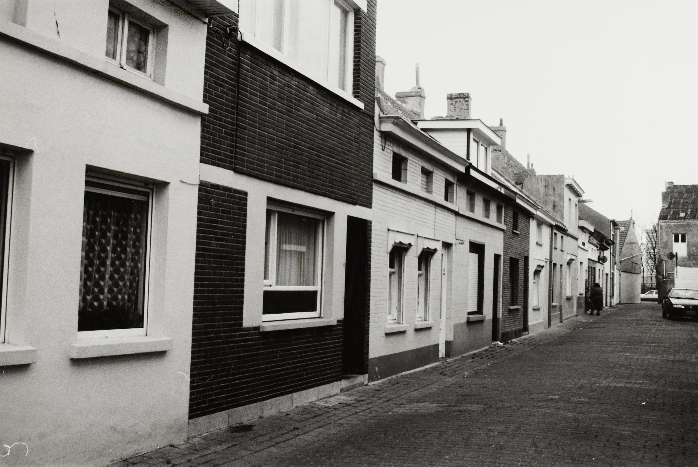 Omschrijving: BESTUUR MONUMENTEN EN LANDSCHAPPEN PROVINCIALE DIRECTIE WEST-VLAANDEREN Sint- Godelieveparochie smalle straat met arbeidershuizen