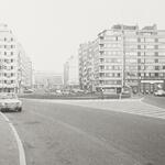 Omschrijving: richting Kursaal West-Vlaanderen seizoenbepla nting , voorheen 11, m breed nu 9,- m. Met monument van "DE ZEE" door Graer en vijver met fonteinen