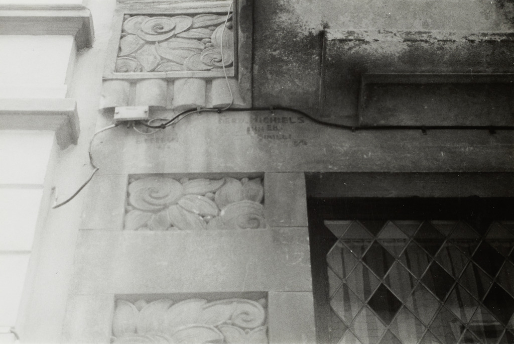 Omschrijving: BESTUUR MONUMENTEN EN LANDSCHAPPEN PROVINCIALE DIRECTIE WEST-VLAANDEREN naam op gevel v aannemer en architect