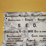 Omschrijving: ROHM West-Vlaanderen Cel Monumenten en Landschappen SEO-co-center 1892 gedenkplaat in portaal