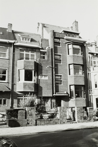 De afbeelding 'Kleinschalig appartementsgebouw en Burgerhuis' wordt ter beschikking gesteld door Agentschap Onroerend Erfgoed (AOE) onder de volgende voorwaarden: Modellicentie voor gratis hergebruik, Naamsvermelding-GelijkDelen 4.0 Internationaal.