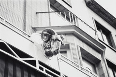 Omschrijving: BESTUUR MONUMENTEN EN LANDSCHAPPEN PROVINCIALE DIRECTIE WEST-VLAANDEREN vergulde ramskop op gietijzeren luifel