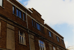 Omschrijving: ROHM - WEST-VLAANDEREN CEL M & L O.L.V.-college. E-achtergevel detail Binnenstad