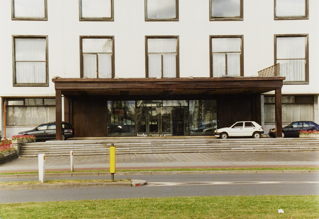Omschrijving: ROHM - WEST-VLAANDEREN CEL M & L Stadhuis 1954-1961 E-O-gevel Ingang