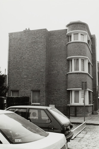 Omschrijving: BESTUUR MONUMENTEN EN LANDSCHAPPEN PROVINCIALE DIRECTIE WEST-VLAANDEREN (Kanterdam) zijgevel met afgeronde hoek