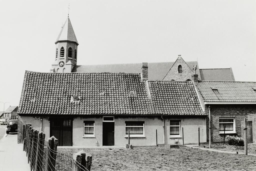 Omschrijving: BESTUUR MONUMENTEN EN LANDSCHAPPEN PROVINCIALE DIRECTIE WEST-VLAANDEREN (boeren) arbeidershuisjes ten z.ron de kerk