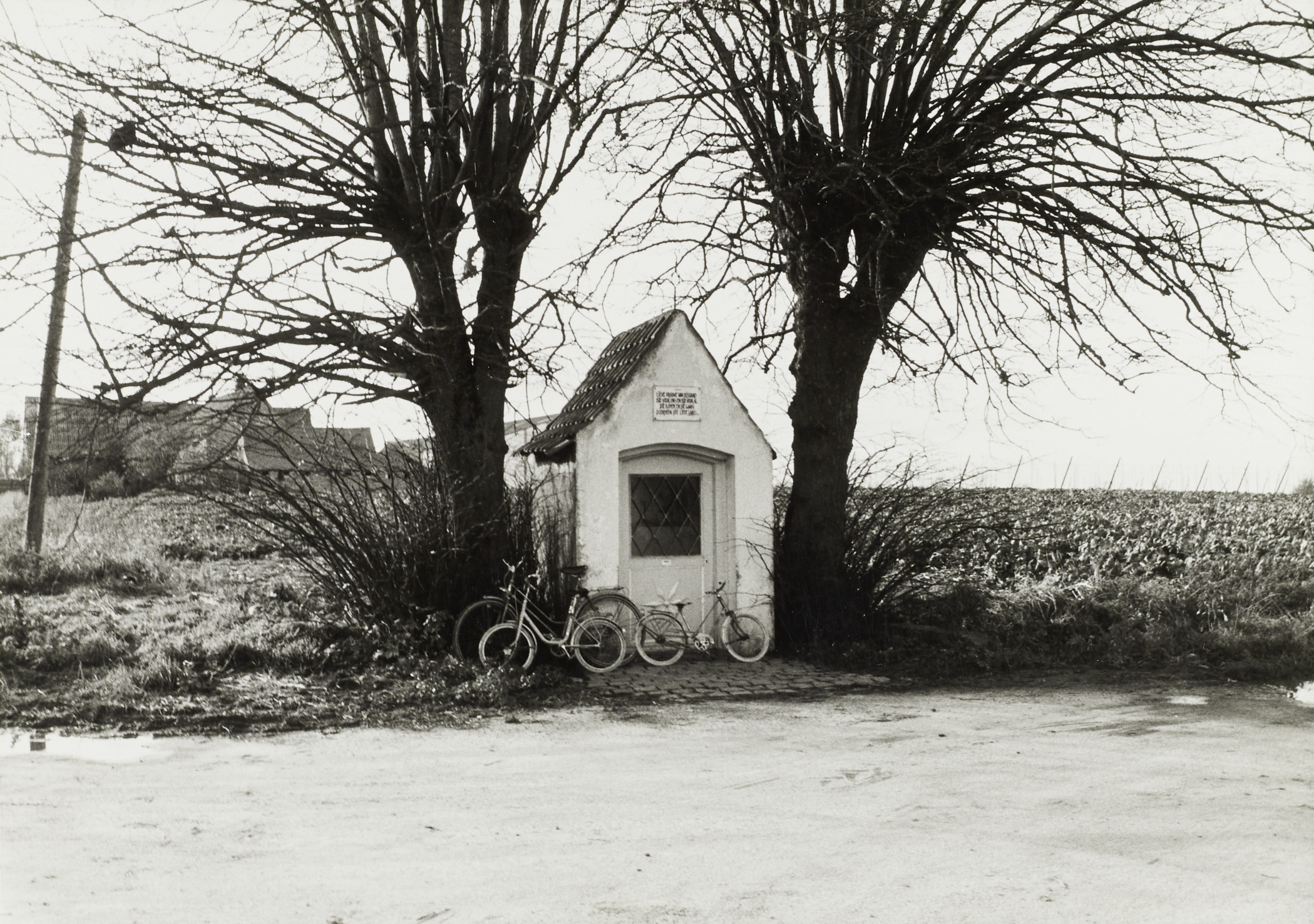 De afbeelding 'Wegkapel met knotlindes' wordt ter beschikking gesteld door Agentschap Onroerend Erfgoed (AOE) onder de volgende voorwaarden: Modellicentie voor gratis hergebruik, Naamsvermelding-GelijkDelen 4.0 Internationaal.