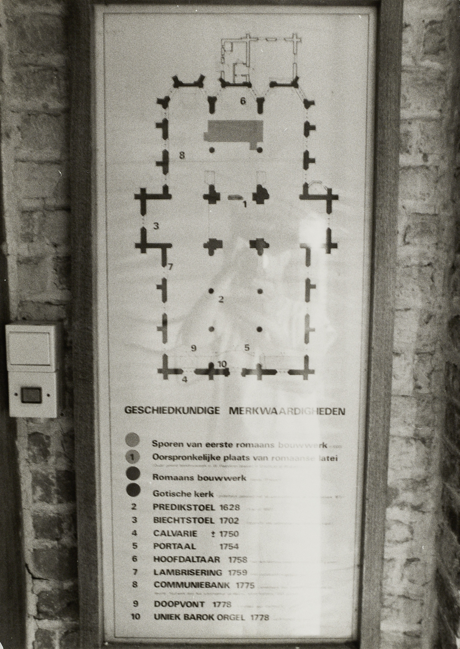 Omschrijving: Grondplan in voorportaal kerk