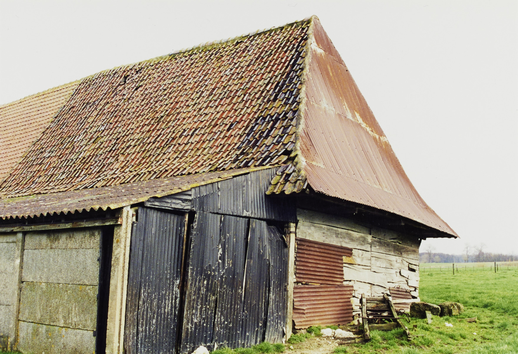 Omschrijving: ROHM - WEST-VLAANDEREN CEL M & L schuur 1757 ? exterieur - zuidwestelijke gev westelijke hoek