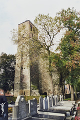 De afbeelding 'Parochiekerk Sint-Pietersbanden met kerkhof en ruïne Sint-Leonarduskerk' wordt ter beschikking gesteld door Agentschap Onroerend Erfgoed (AOE) onder de volgende voorwaarden: Modellicentie voor gratis hergebruik, Naamsvermelding-GelijkDelen 4.0 Internationaal.