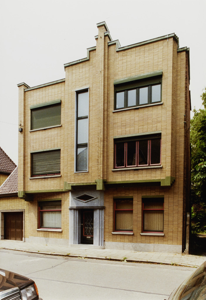 De afbeelding 'Woon- en winkelhuis naar ontwerp van Jules Van Peteghem' wordt ter beschikking gesteld door Agentschap Onroerend Erfgoed (AOE) onder de volgende voorwaarden: Modellicentie voor gratis hergebruik, Naamsvermelding-GelijkDelen 4.0 Internationaal.