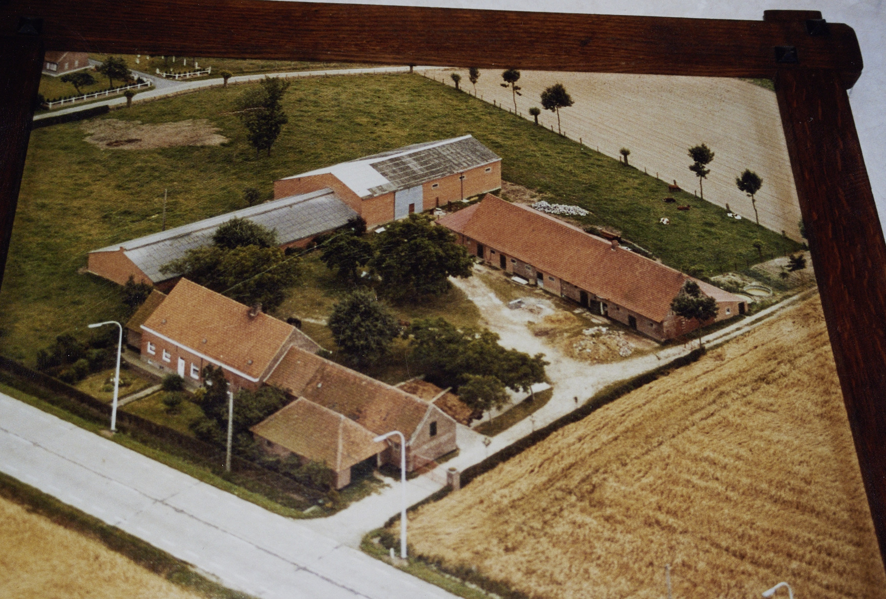 Omschrijving: ROHM West-Vlaanderen Cel Monumenten en Landschappen hoeve luchtfoto jaren '80