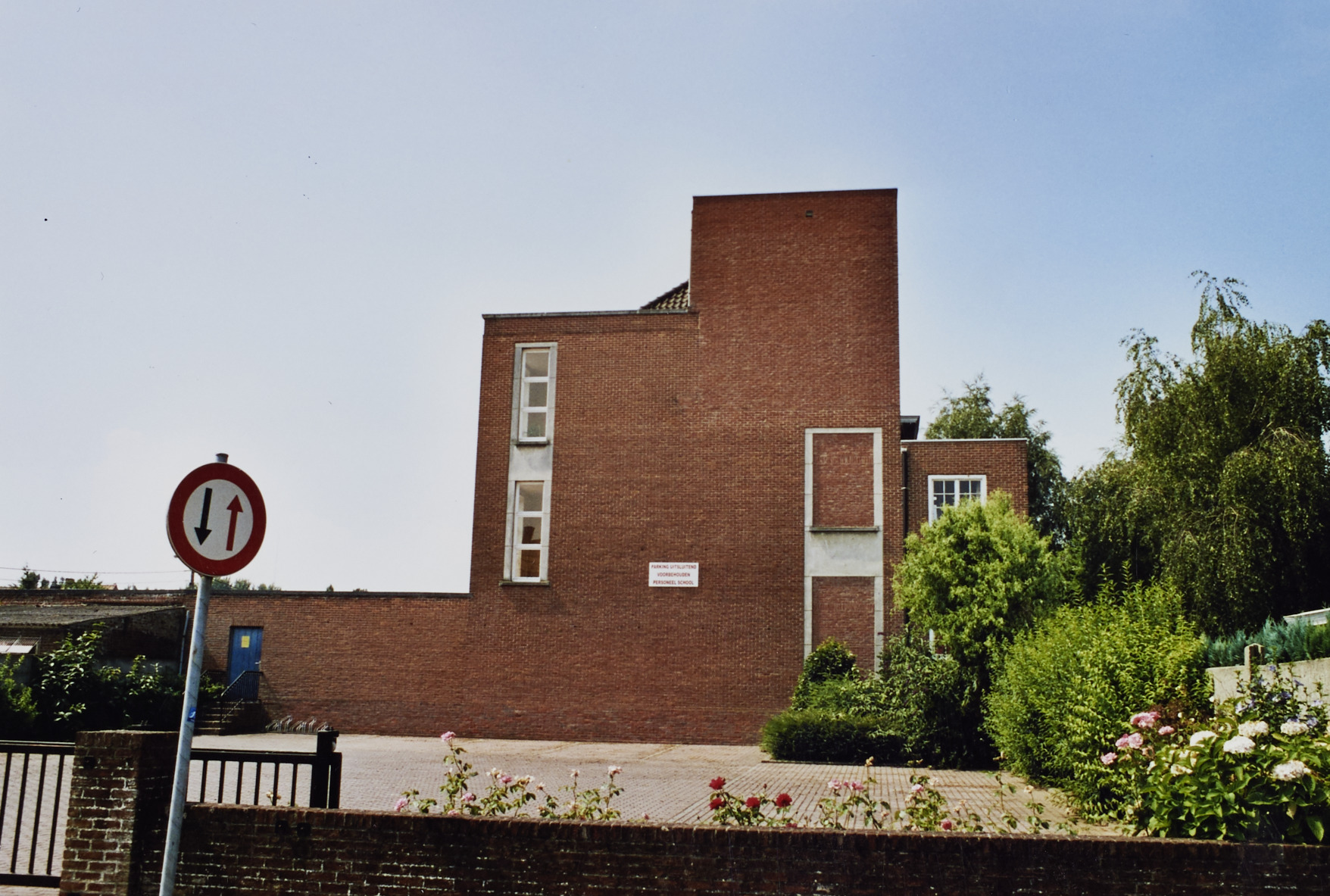 Omschrijving: ROHM West-Vlaanderen Cel Monumenten en Landschappen school O zijgevel, zicht vanuit Haantjesst