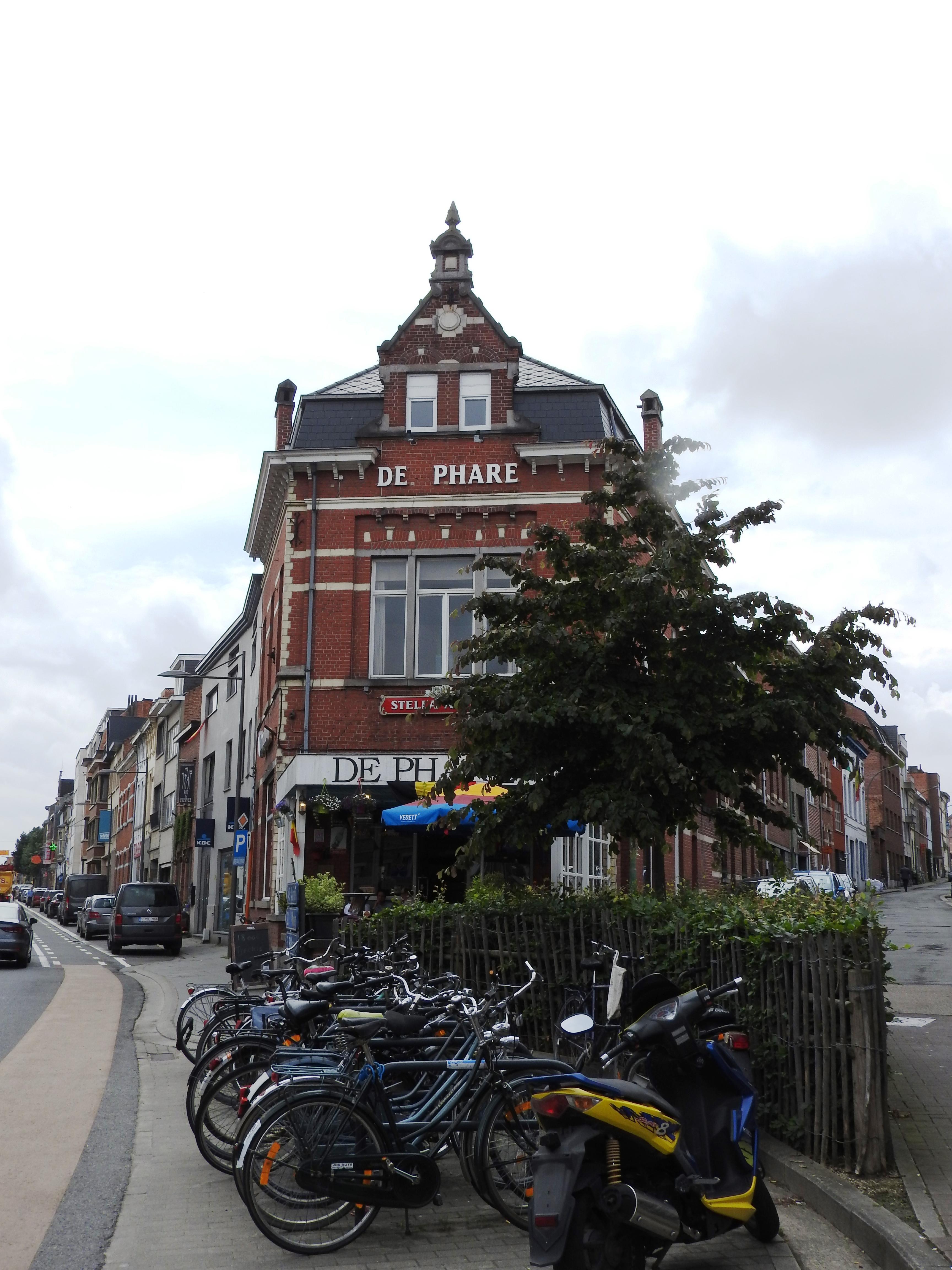 De afbeelding 'Hoekpand met café' gemaakt door Hooft, Elise wordt ter beschikking gesteld door Agentschap Onroerend Erfgoed (AOE) onder de volgende voorwaarden: Modellicentie voor gratis hergebruik, Naamsvermelding-GelijkDelen 4.0 Internationaal.