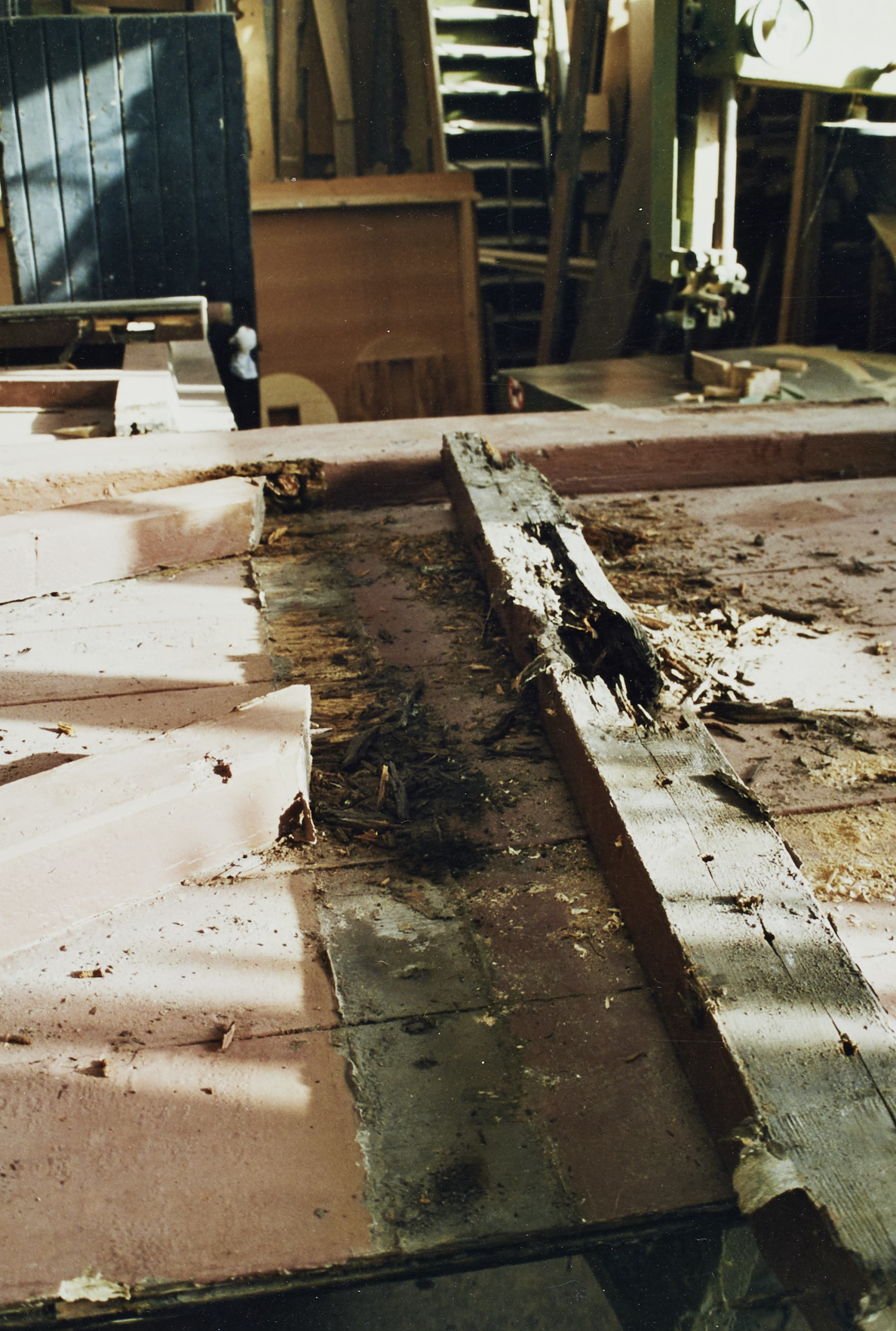 Omschrijving: ROHM - WEST-VLAANDEREN CEL M & L Poort voormalige Sint-Nik ? binnenzijde vleugel restauratiewerken (arelier schrijnwerker
