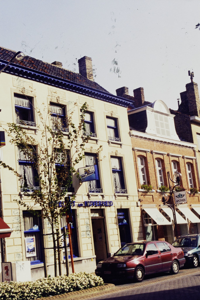 Omschrijving: (Oostzijde, t.o.v. de Pannestraat) op de site v. het vroegere capucignerklooster nrs: L = 29 marc vander gucht Z. 27 Jan verslede (apotheker) gebouwd XIX. C