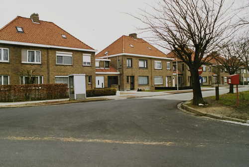 Omschrijving: sociale woningen, J. 1950, voorgevel