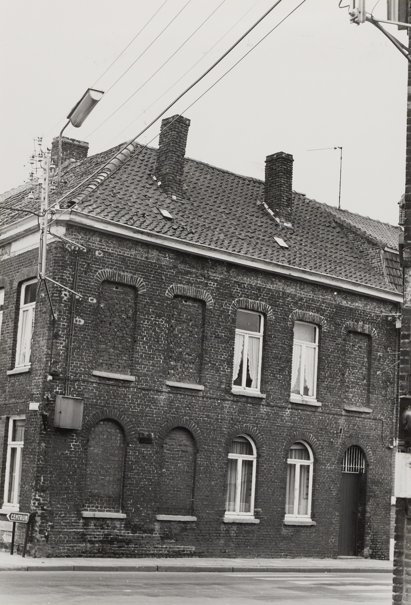 De afbeelding 'Hoekcomplex stadswoningen' wordt ter beschikking gesteld door Agentschap Onroerend Erfgoed (AOE) onder de volgende voorwaarden: Modellicentie voor gratis hergebruik, Naamsvermelding-GelijkDelen 4.0 Internationaal.