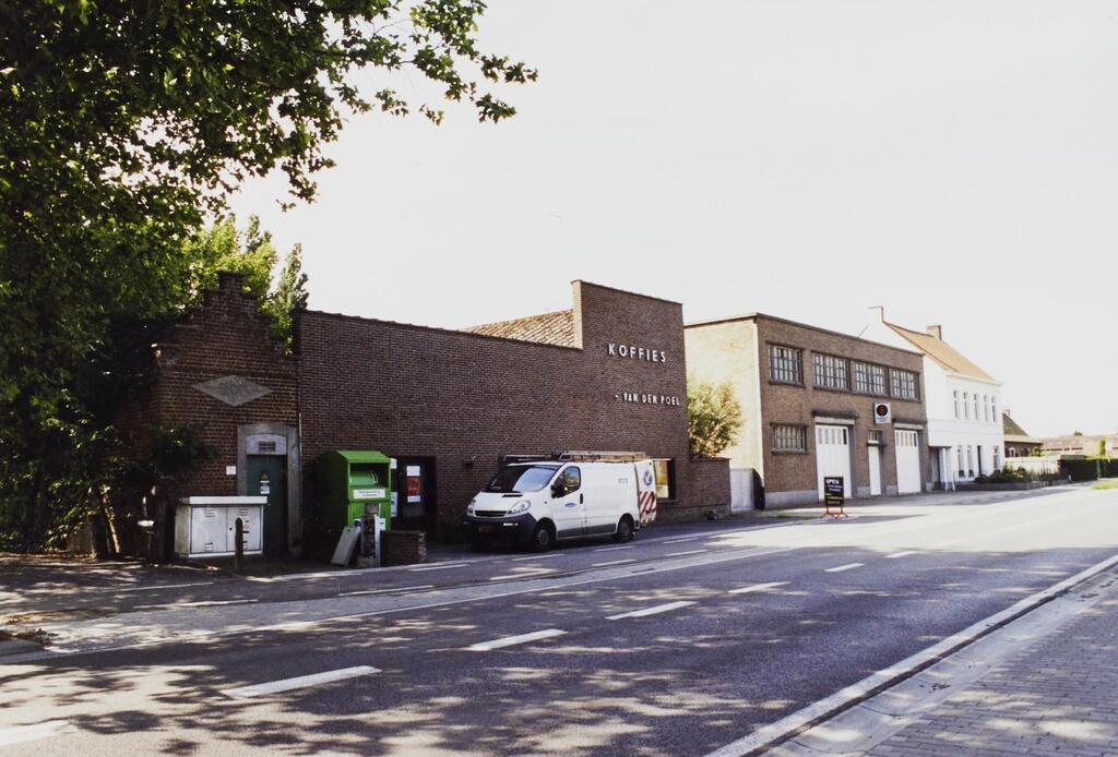 Omschrijving: R-O Vlaanderen onroerend erfgoed en volgende dubbelhuis met fabrieksgebouwen en elek. cab.