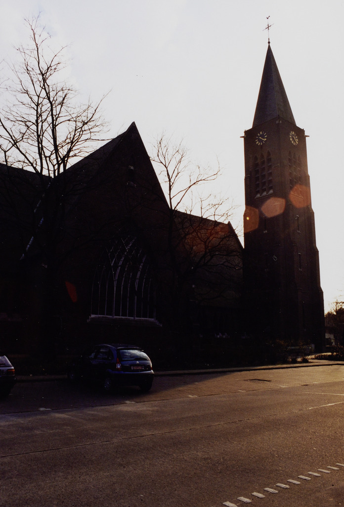 Omschrijving: ROHM West-Vlaanderen Cel Monumenten en Landschappen Kerk Zijaanzicht toren