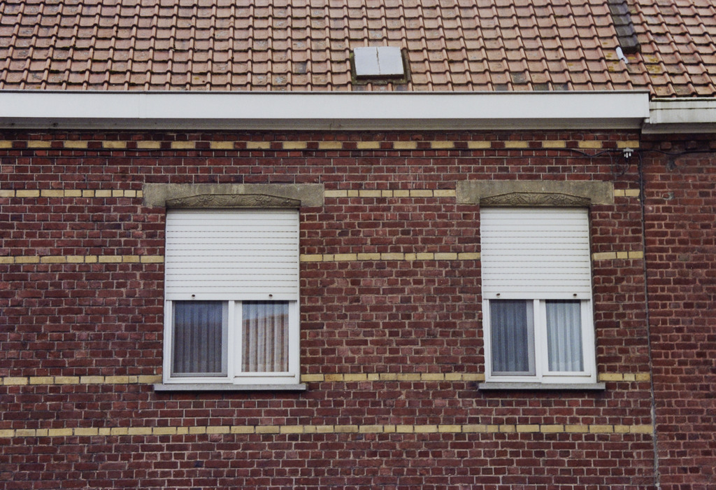 Omschrijving: ROHM West-Vlaanderen Cel Monumenten en Landschappen Woonhuis Bakstenen banden en betonlatei