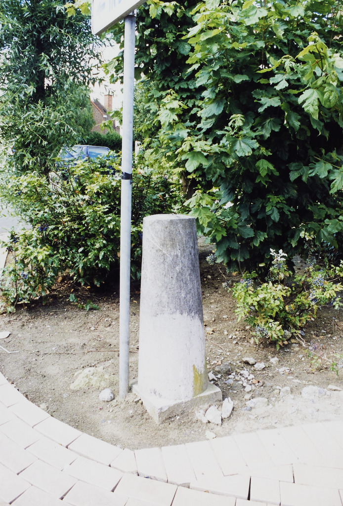 Omschrijving: R-O Vlaanderen Onroerend Erfgoed Arduinen grenspaal Hulstersestraat