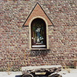 De afbeelding 'Vlasschuur met gevelniskapel' wordt ter beschikking gesteld door Agentschap Onroerend Erfgoed (AOE) onder de volgende voorwaarden: Modellicentie voor gratis hergebruik, Naamsvermelding-GelijkDelen 4.0 Internationaal.