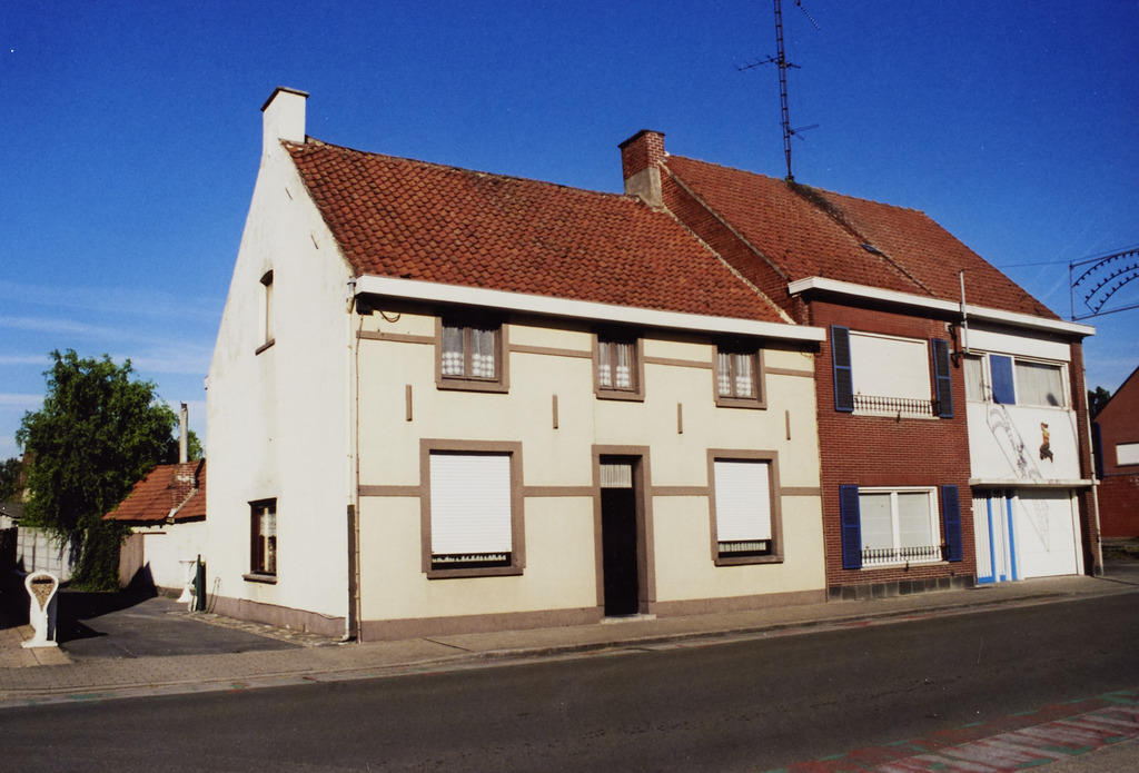 Omschrijving: R-O Vlaanderen onroerend erfgoed halfvrijstaand dubbelhuis