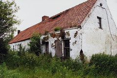 Omschrijving: R-O Vlaanderen onroerend erfgoed lage koppelwoning in slechte staat
