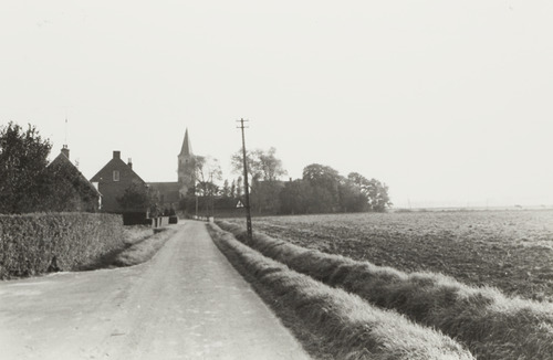 Omschrijving: Dorpskom, zicht vanuit oude
