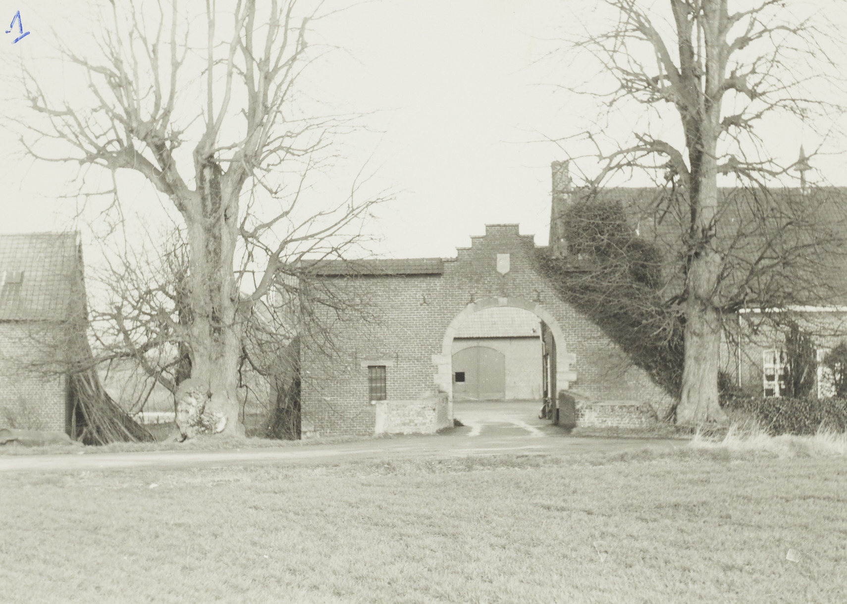 Omschrijving: Boerderij met ingangspoort van oude kasteel uit de XVI eeuw met wal zouden