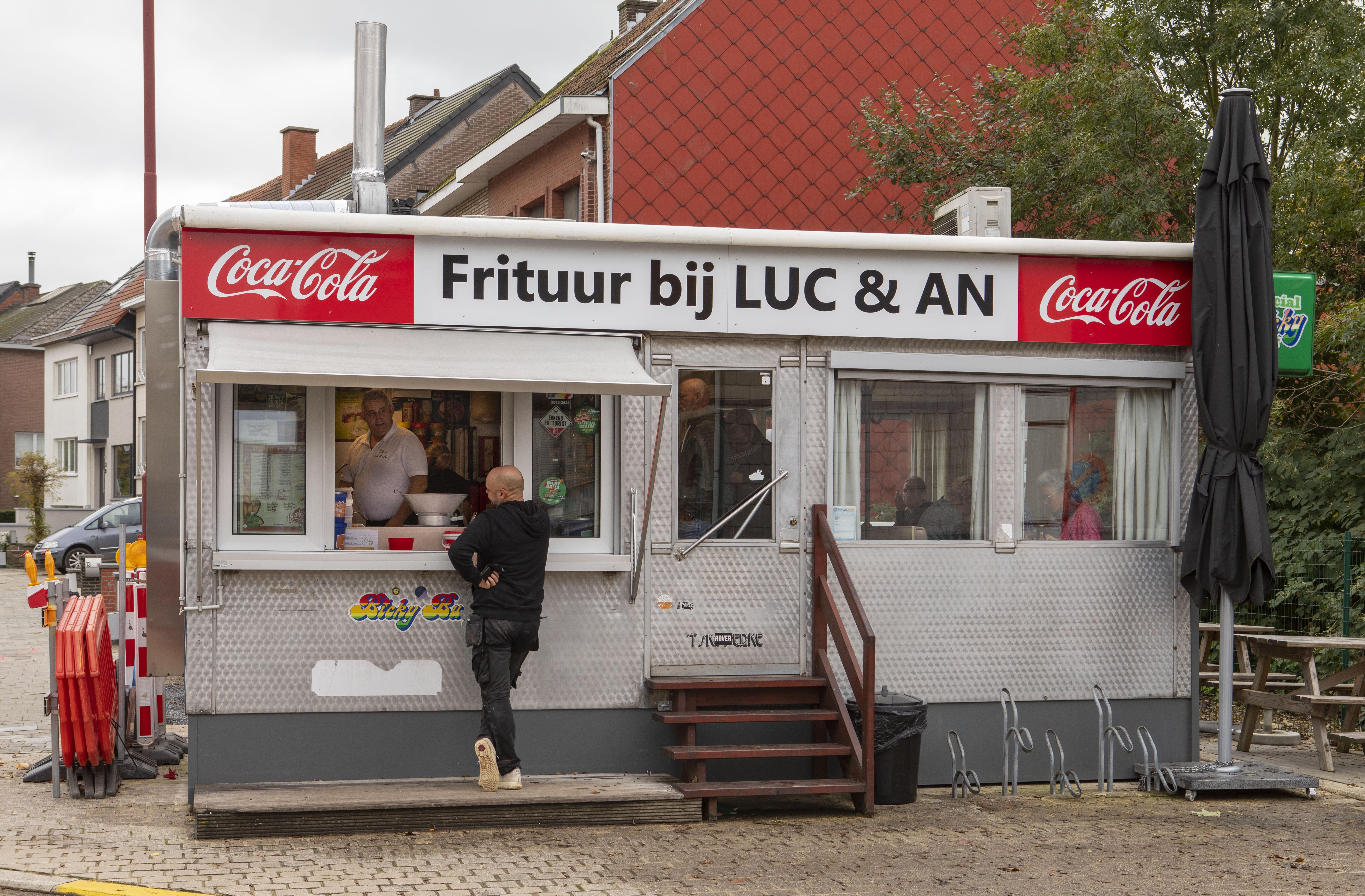 De afbeelding 'Frietkot' gemaakt door Vandevorst, Kris wordt ter beschikking gesteld door Agentschap Onroerend Erfgoed (AOE) onder de volgende voorwaarden: Modellicentie voor gratis hergebruik, Naamsvermelding-GelijkDelen 4.0 Internationaal.