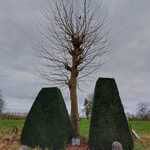 De afbeelding 'Smeedijzeren kruis met taxus en plataan' gemaakt door de Haan, Aukje wordt ter beschikking gesteld door Agentschap Onroerend Erfgoed (AOE) onder de volgende voorwaarden: Modellicentie voor gratis hergebruik, Naamsvermelding-GelijkDelen 4.0 Internationaal.